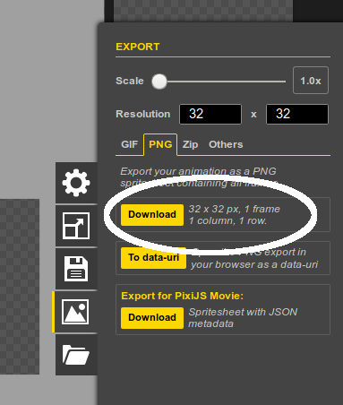 Create your character by adding frames (try cloning them and altering them) and when you are ready then export an image of your animation and follow the steps below to make it animated. Only think about your character running right for now.
