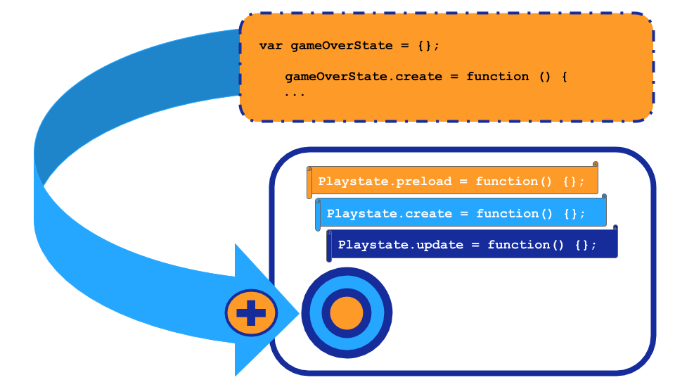 We you may well want to create two more states, one for an opening scene or starting menu called startState and another called winState for if you win the game. We haven’t written or added these state objects to our code here. But you can follow the same pattern to see how they might be implemented.